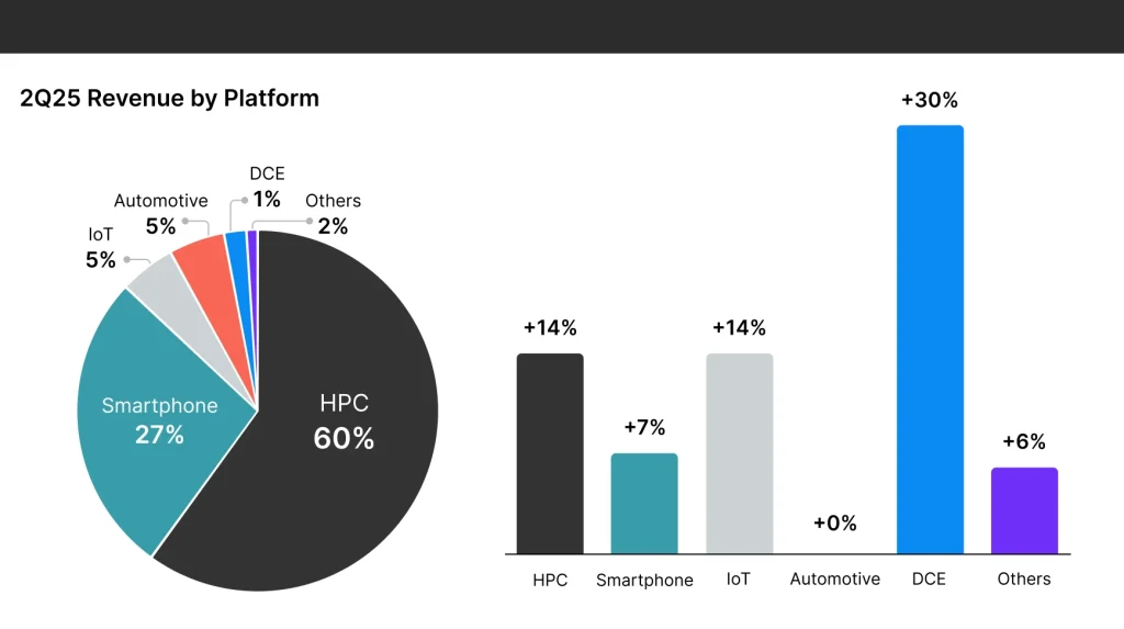 Digging into the earnings, it was TSMC’s high-performance computing (HPC) division – which encompasses AI and 5G applications – that drove second quarter sales. This contributed approximately 60% of revenue versus 52% a year earlier. Advanced technologies – defined as chips smaller than 7-nanometer – accounted for 74% of total wafer revenue. That was up from 67% in Q2 2024 so clearly demand for advanced AI chip technology has increased.
