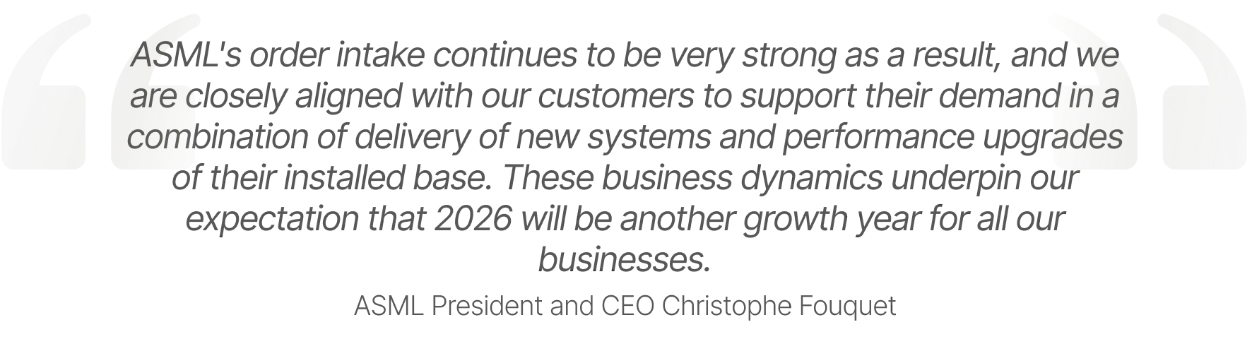 On the earnings call4, CFO Roger Dassen addressed potential concerns about ASML's ability to keep up with demand, stating that the company should be able to ship 60 of its high-performance EUV machines in 2026. That would represent an increase of 25% year-over-year.