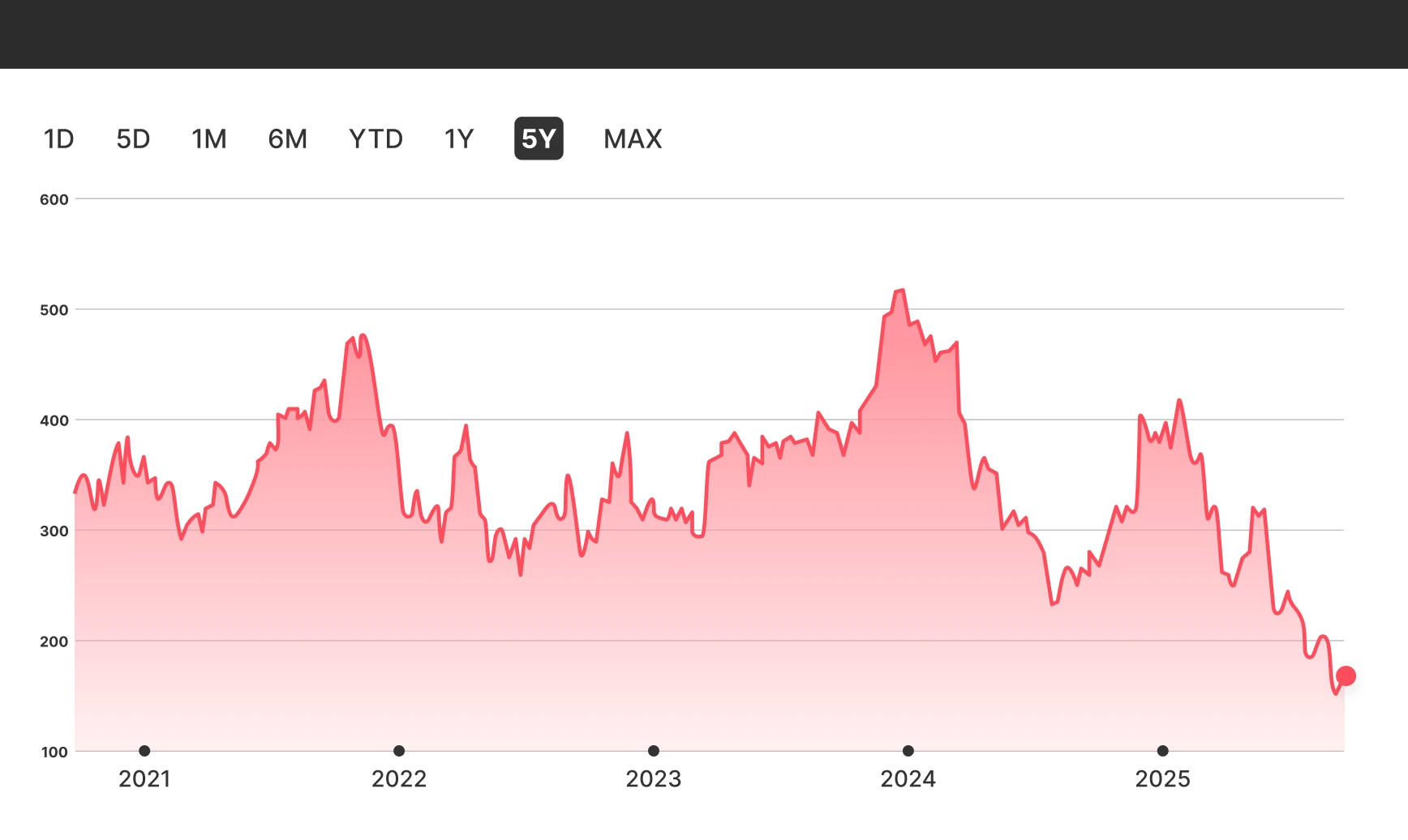 Once a reliable performer, Lululemon stock has experienced a dramatic collapse recently. Currently, it is trading near $180 - around 50% below the level it started the year at and more than 60% below its all-time highs.