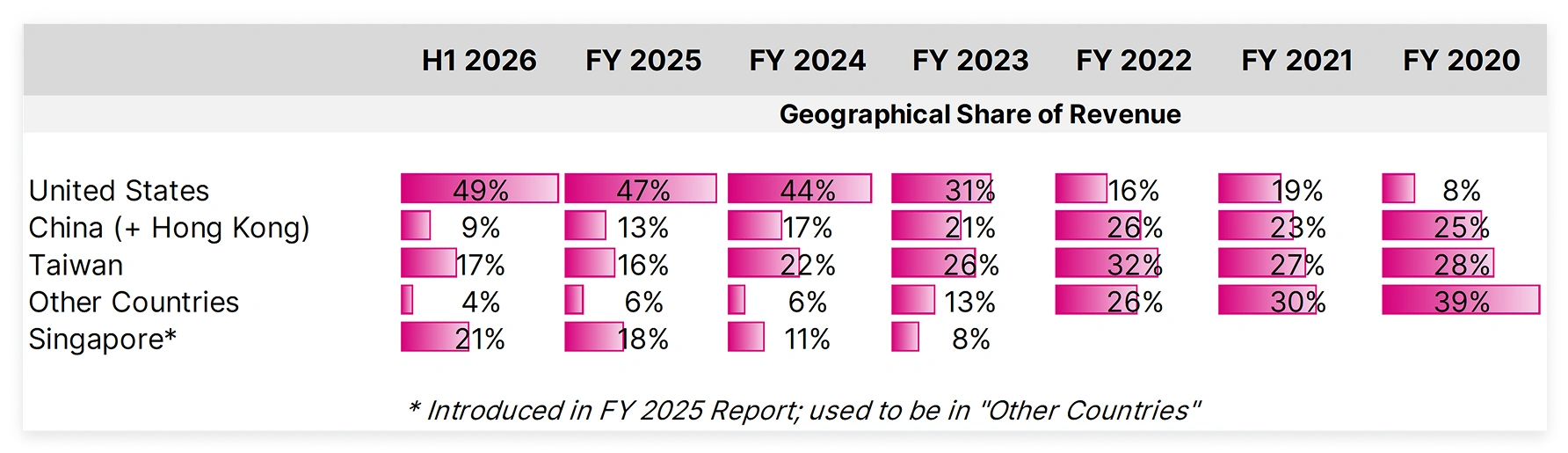 It was long suspected that Singapore was a re-export hub through which China was gaining access to technologies that were proscribed over the past two administrations. For its H1 2026 at least, the company states in its release that 99% of “controlled” products were purchased by U.S.-based customers. In its Q2, four direct customers accounted for 45% of all revenue earned.