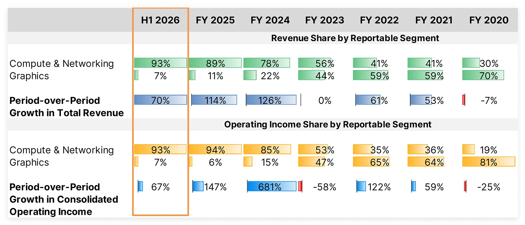 Despite this, growth in the first half (H1) of the company’s current fiscal year relative to FY 2025 is quite strong. The company’s total top and bottom-line trends are also quite strong.