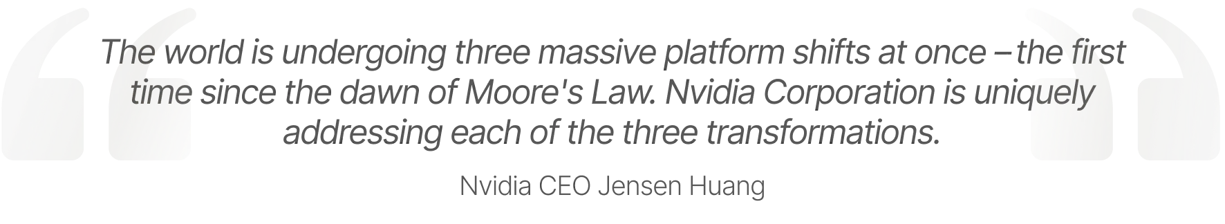 The first shift is from general-purpose CPU computing to GPU-based accelerated computing. This is happening as Moore’s Law slows, and it becomes harder to achieve significant performance by increasing transistor density.