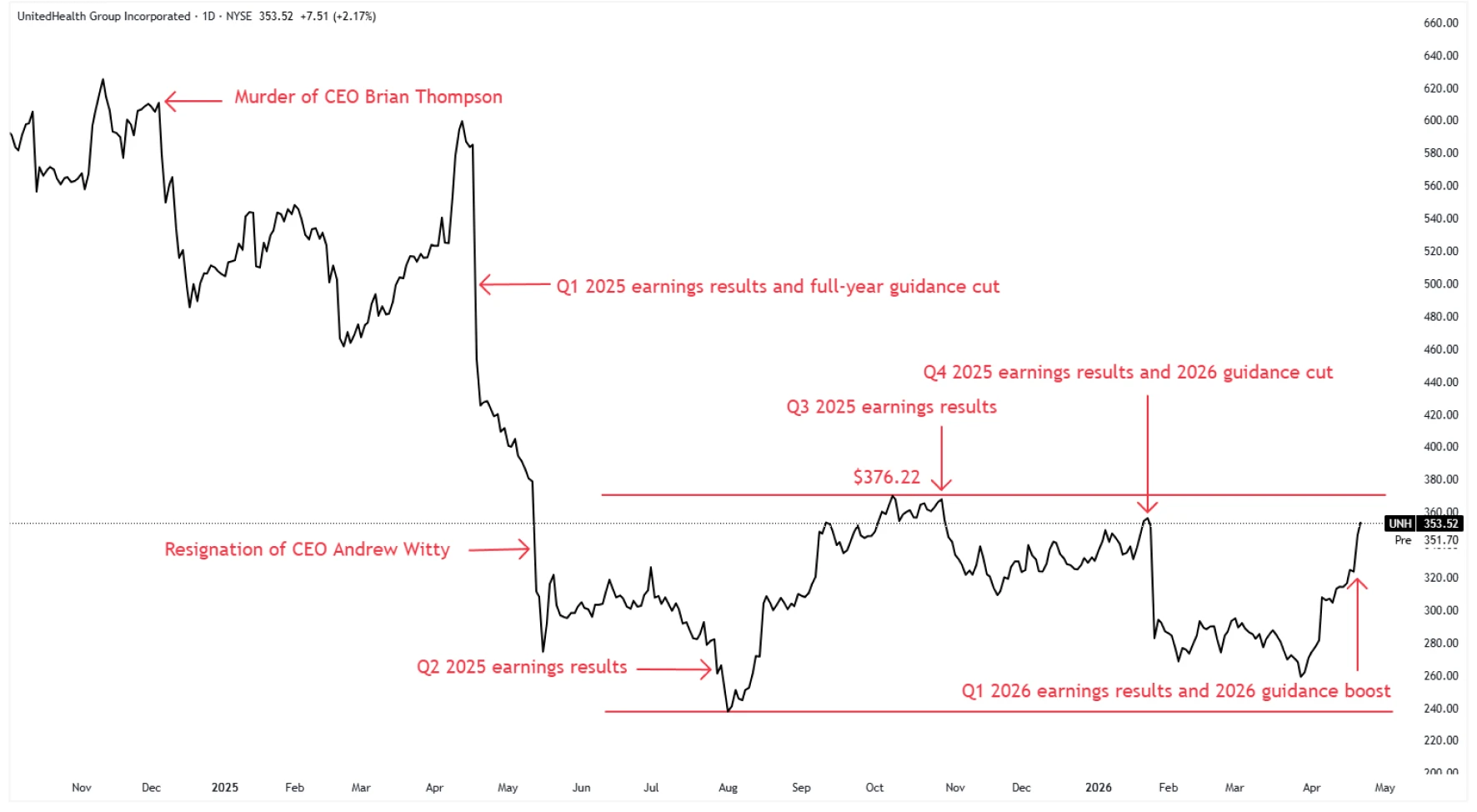 Source: TradingView. UNH daily price chart, as of April 22, 2026